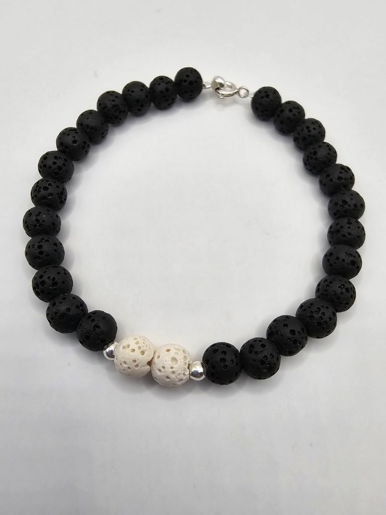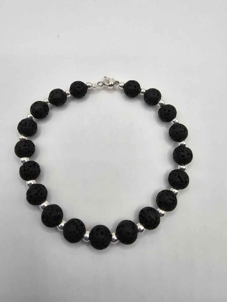 PULSERA PIEDRA VOLCANICA MULTICOLOR Y BOLITAS DE PLATA
