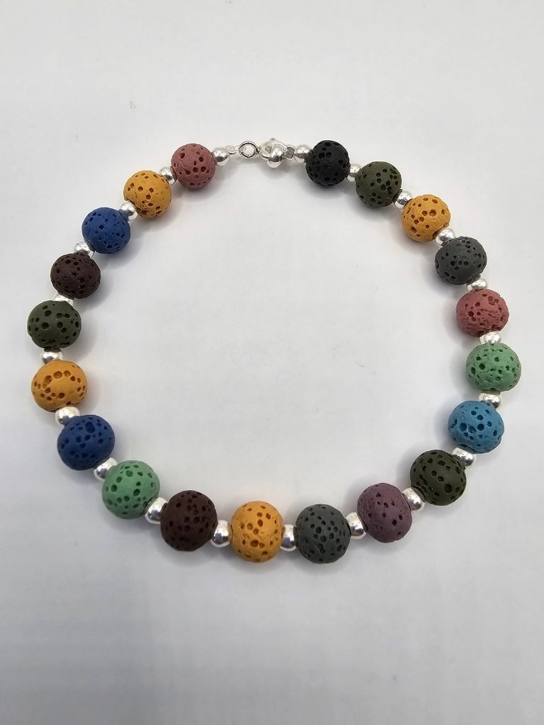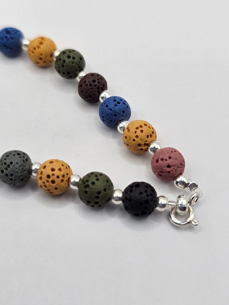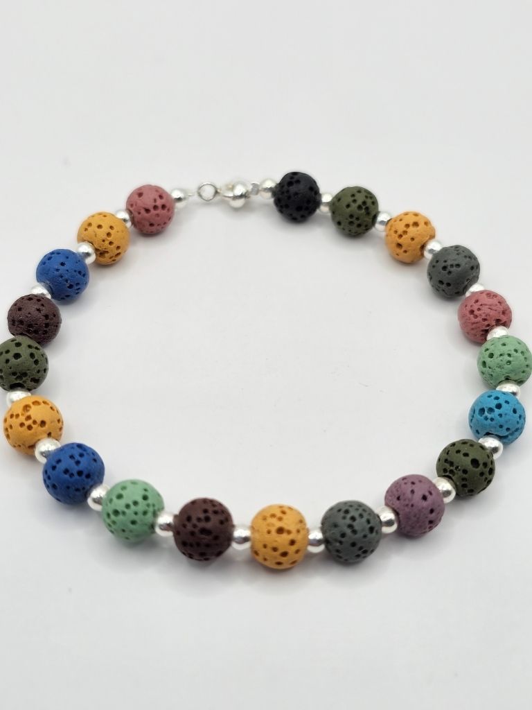 PULSERA DE PIEDRA VOLCANICA MULTICOLOR DE 6 MM Y BOLITAS DE PLATA DE 3 MM DE 18 CM