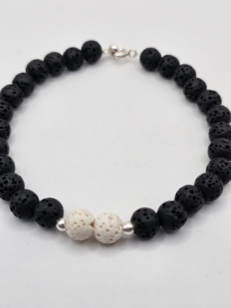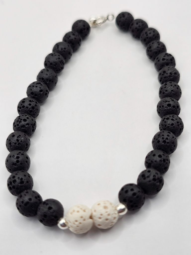 PULSERA PIEDRA VOLCANICA NEGRA Y BLANCA Y BOLITAS DE PLATA