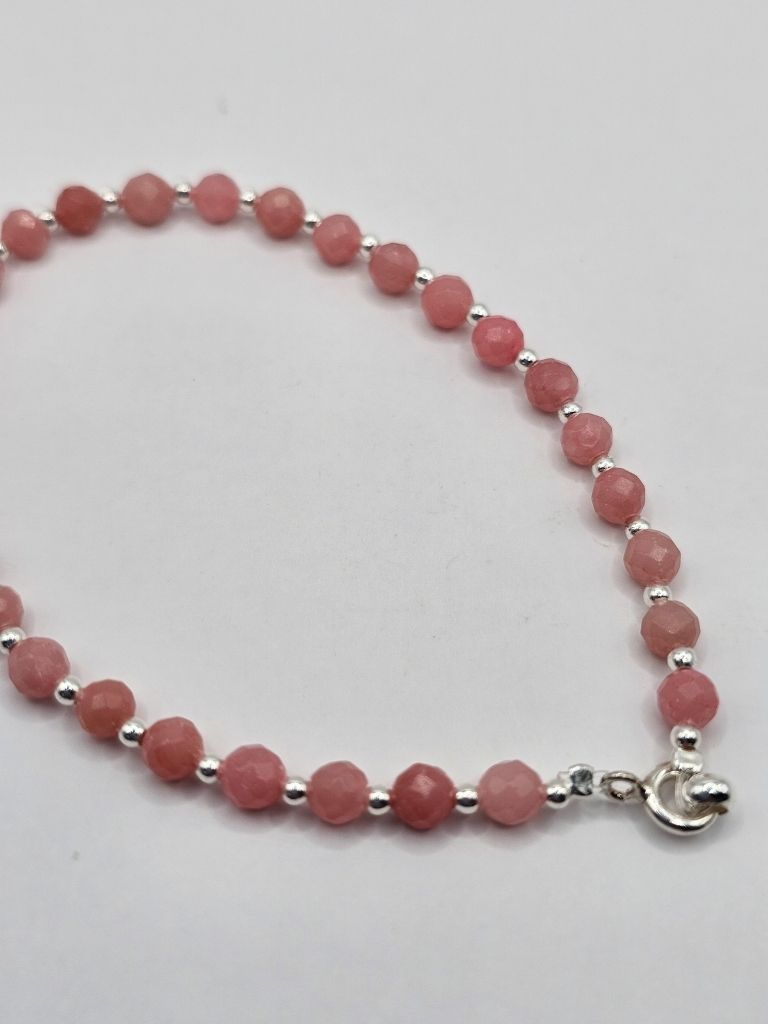 PULSERA DE PIEDRA VOLCANICA BLANCO Y NEGRO DE 6 MM Y BOLITAS DE PLATA DE 3 MM DE 18 CM