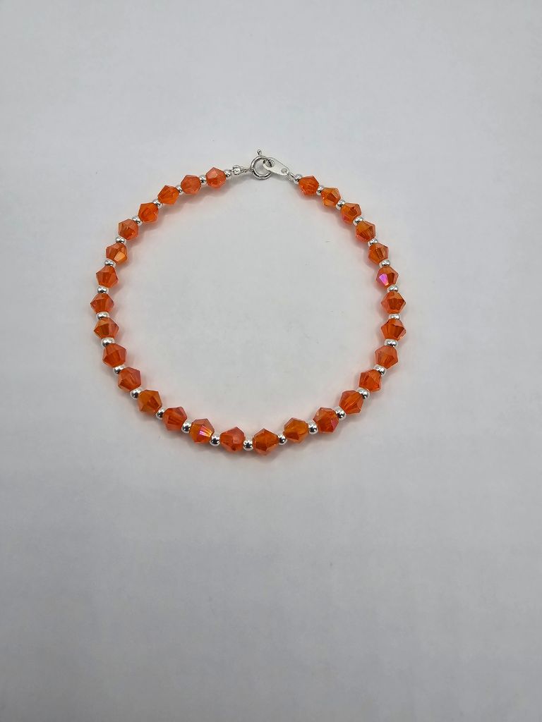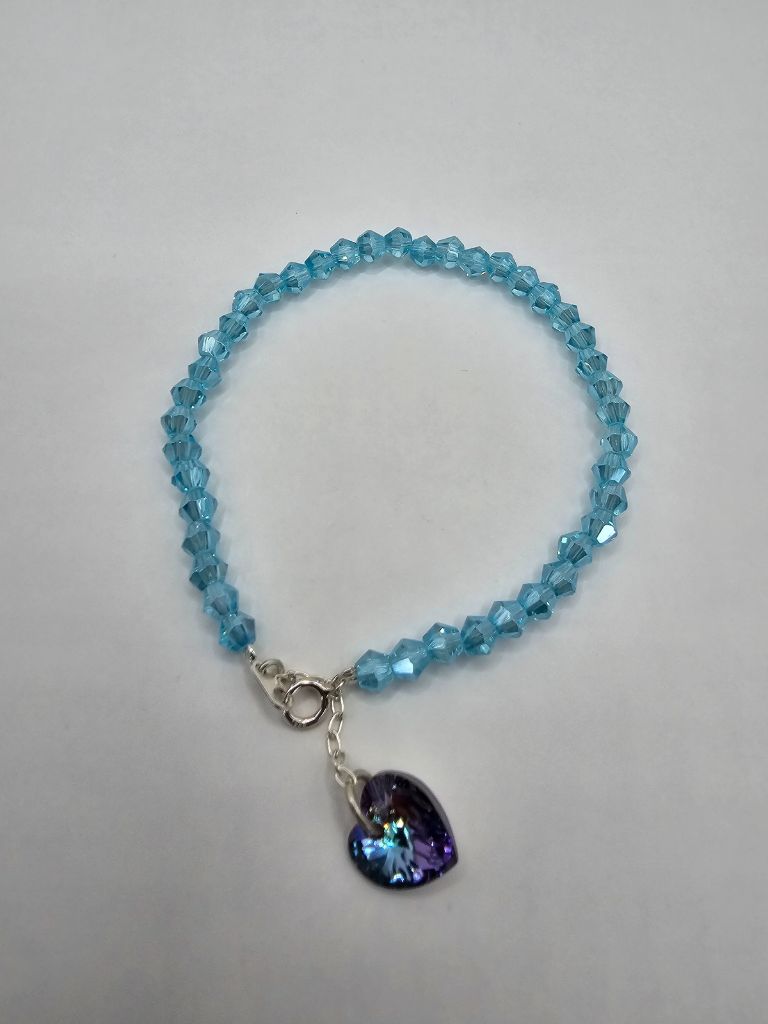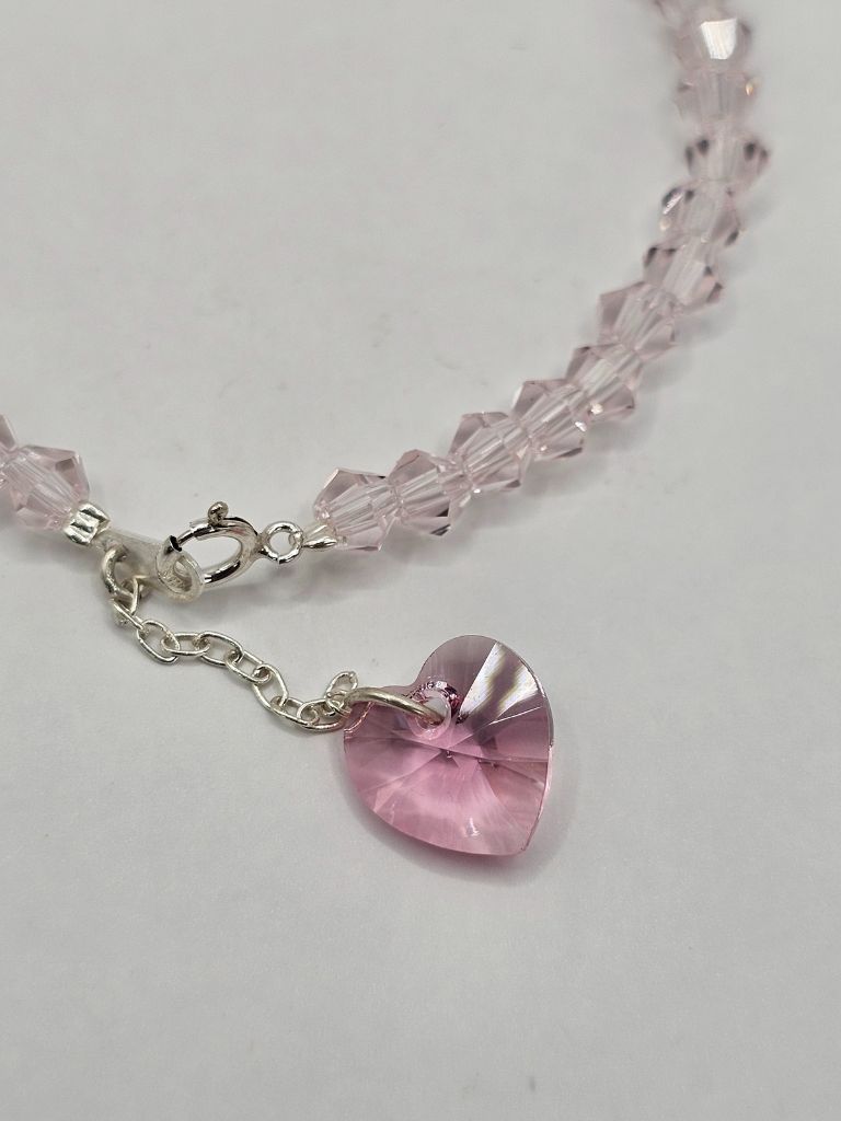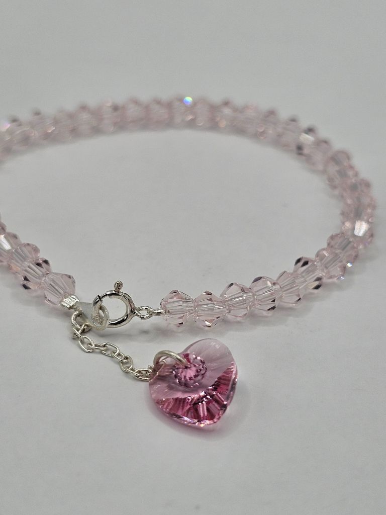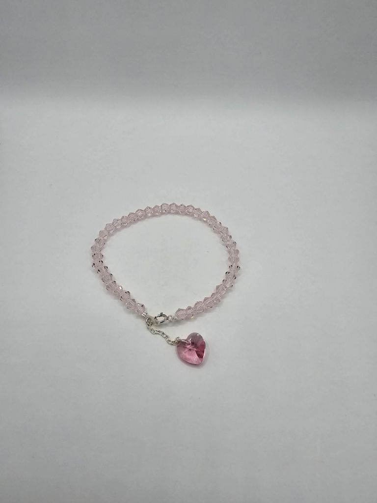 PULSERA DE PLATA Y CRISTAL DE ROCA CON DIJE CORAZON SWAROVSKI ROSA DE 17 CM
